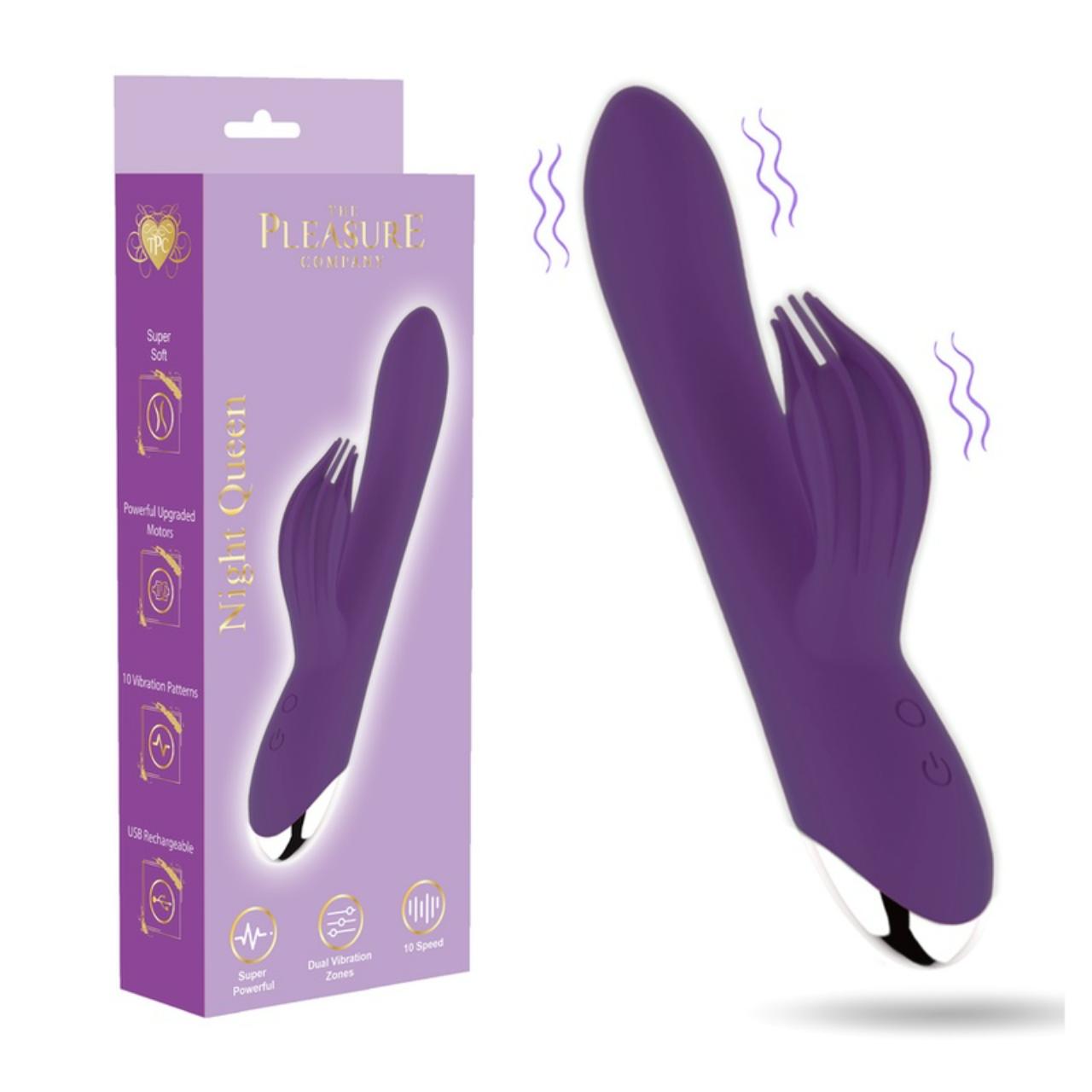 The Pleasure Company - Night Queen (1 Pack) is a "super-charged" rechargeable bullet vibrator designed for royalty-level power in a sleek, compact frame. This model is available in two regal colors: Pink and Purple.