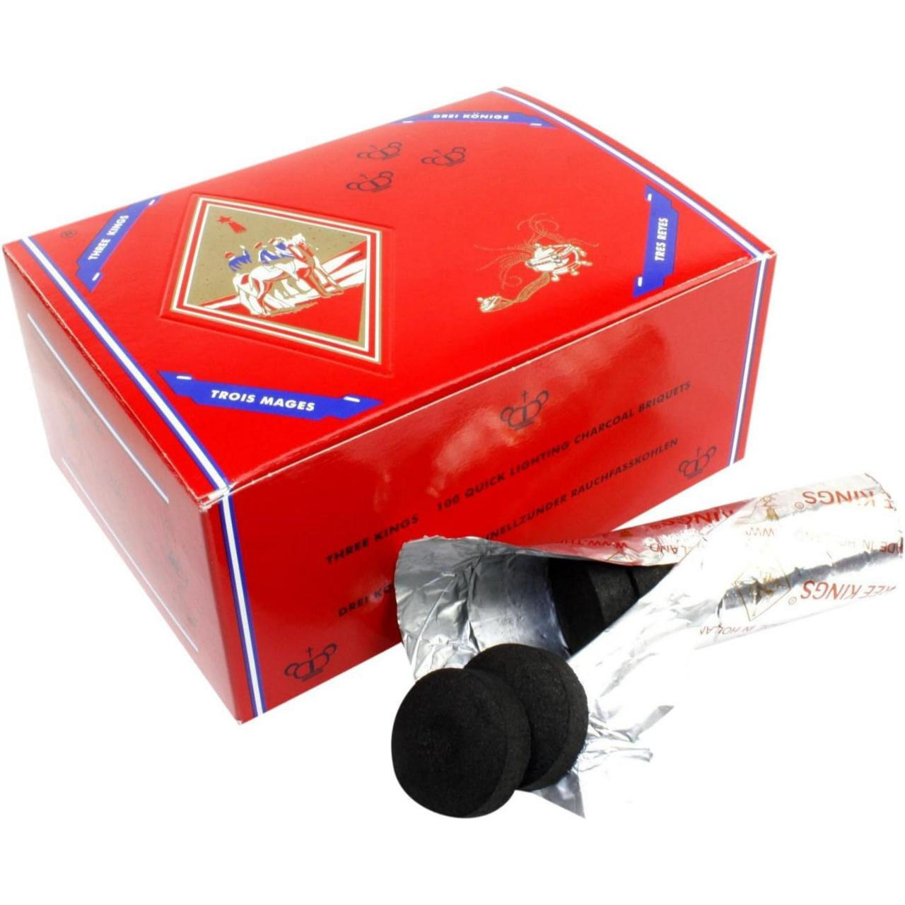Three Kings Charcoal (10 Rolls per Box / 10 Pieces per Roll) is widely considered the original and most prestigious brand of quick-light charcoal in the world. Manufactured in the Netherlands, Three Kings has been the industry benchmark for decades due to its consistent quality, low odor, and reliable ignition.