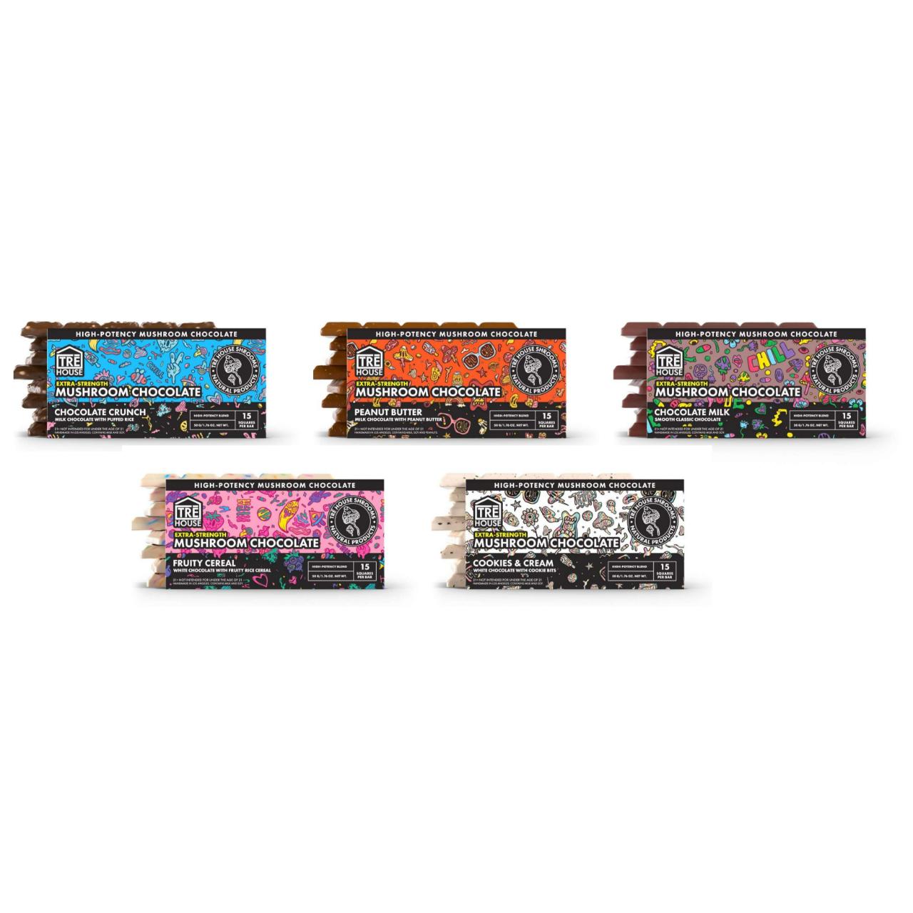 The TRĒ House Extra Strength Magic Mushroom Blend Chocolate Bar – 10PK is a convenient and delicious way to enjoy the effects of psilocybin mushrooms. Each chocolate bar is carefully formulated for consistent potency, providing a reliable and enjoyable experience.