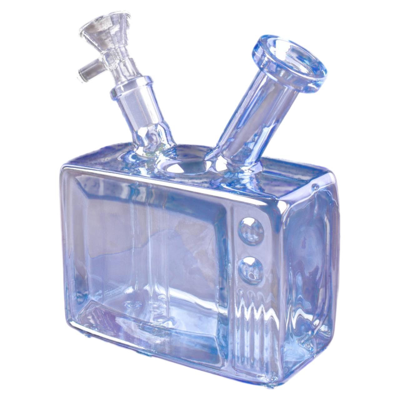 Retro Aesthetic: The body of the pipe is shaped like a classic TV set, complete with molded "knobs" and "antenna" details. Many models feature an electroplated finish, giving the glass a metallic, iridescent shine.