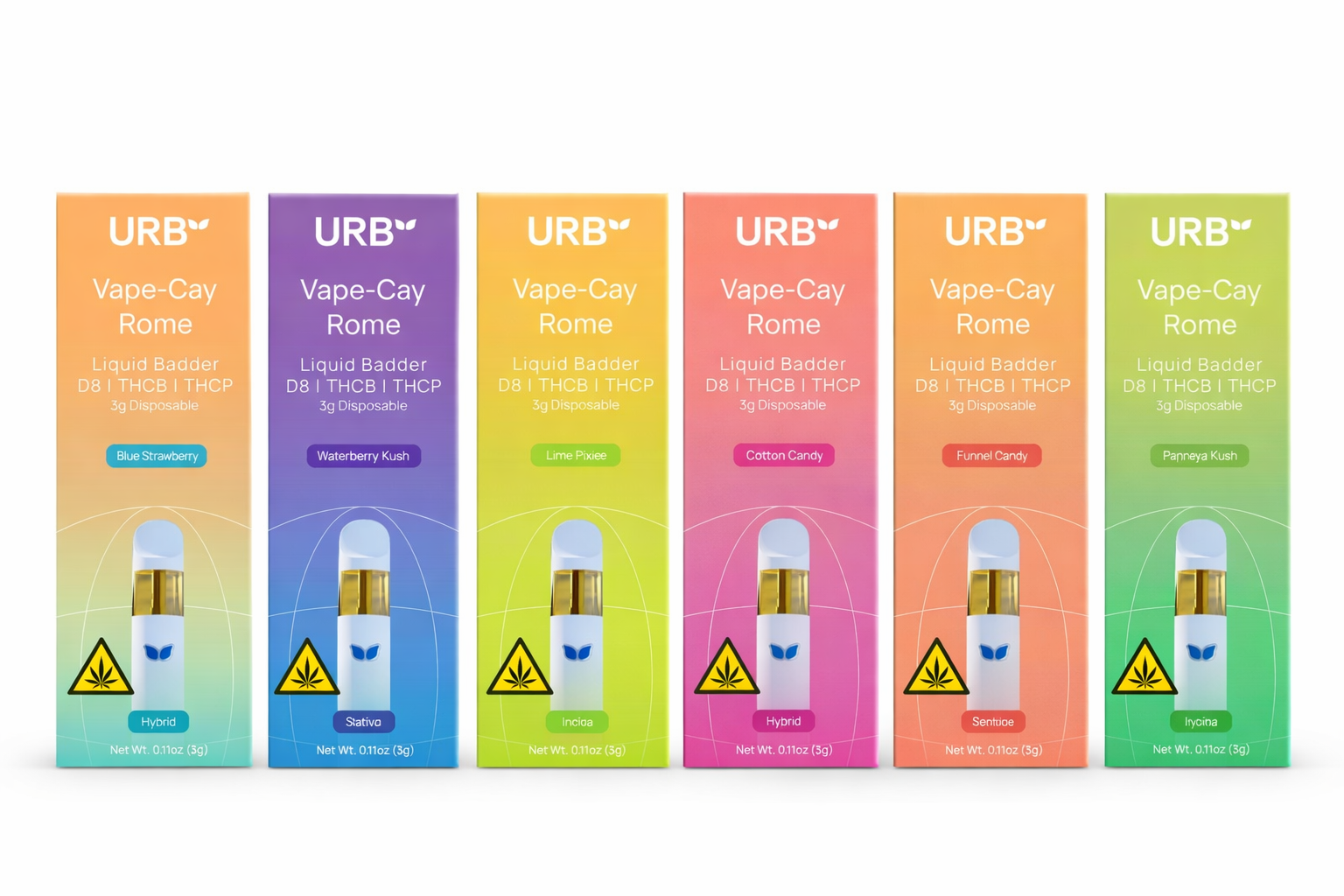 URB - VAPE-CAY ROME - LIQUID BADDER - 3G DISPOSABLE - D8/THCA/THCB/THCP - 6CT