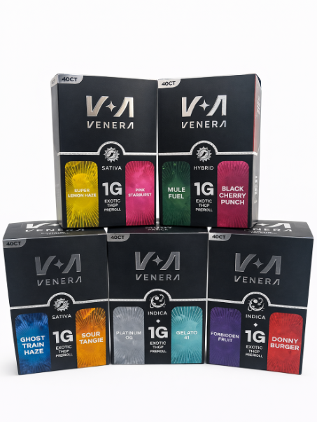 The Venera THCP 1G Pre-Rolls in the 40ct Master Display are a high-volume, professional-grade solution for retail environments. Venera is known for its "Designer Strain" approach, and this display features five distinct Dual-Strain Blends, where each pre-roll combines two complementary terpene profiles for a more complex aroma and effect.