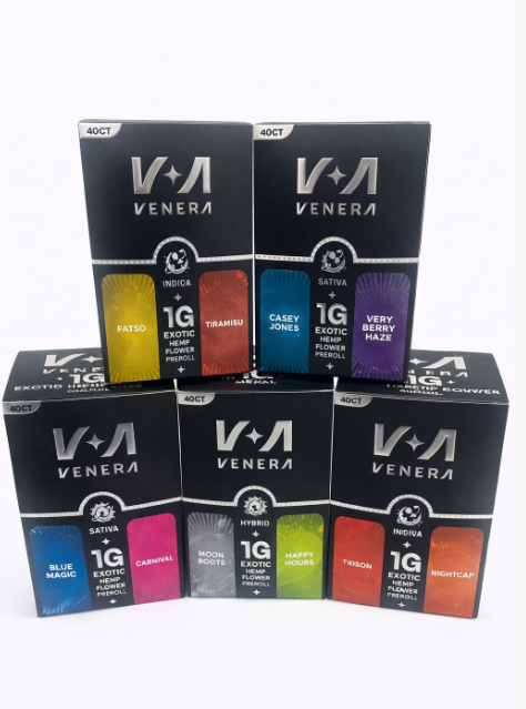 The Venera THCP Exotic Preroll 1G–40CT collection delivers a premium hemp experience designed for customers seeking bold flavor, smooth smoke, and consistent quality. Crafted with carefully selected exotic hemp flower and infused with THCP, these prerolls are rolled for uniform burn and reliable performance, making them ideal for both retail shelves and bulk buyers.