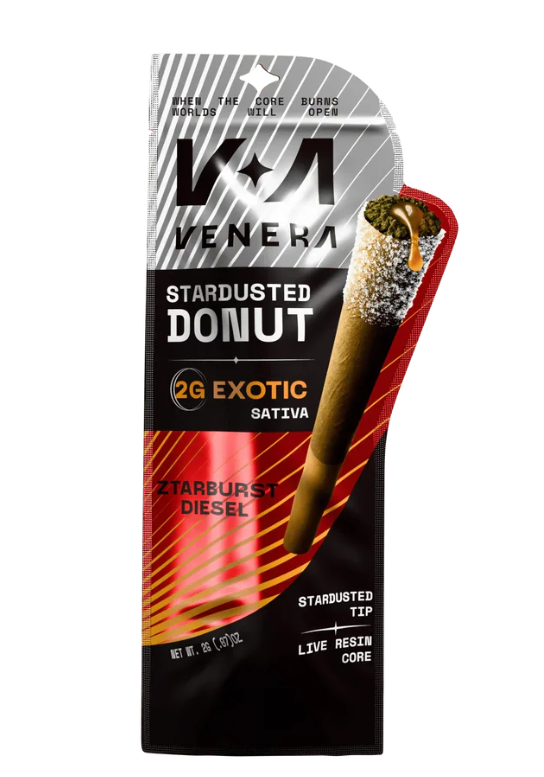 Step into a higher tier of infused smoking with the Venera Stardusted Donut 2G Pre-Rolls—a luxury experience engineered for flavor, potency, and smooth performance. Each pre-roll is crafted with premium exotic flower, a live resin core, and a signature stardusted tip, delivering a slow-burning, terpene-rich session from start to finish.