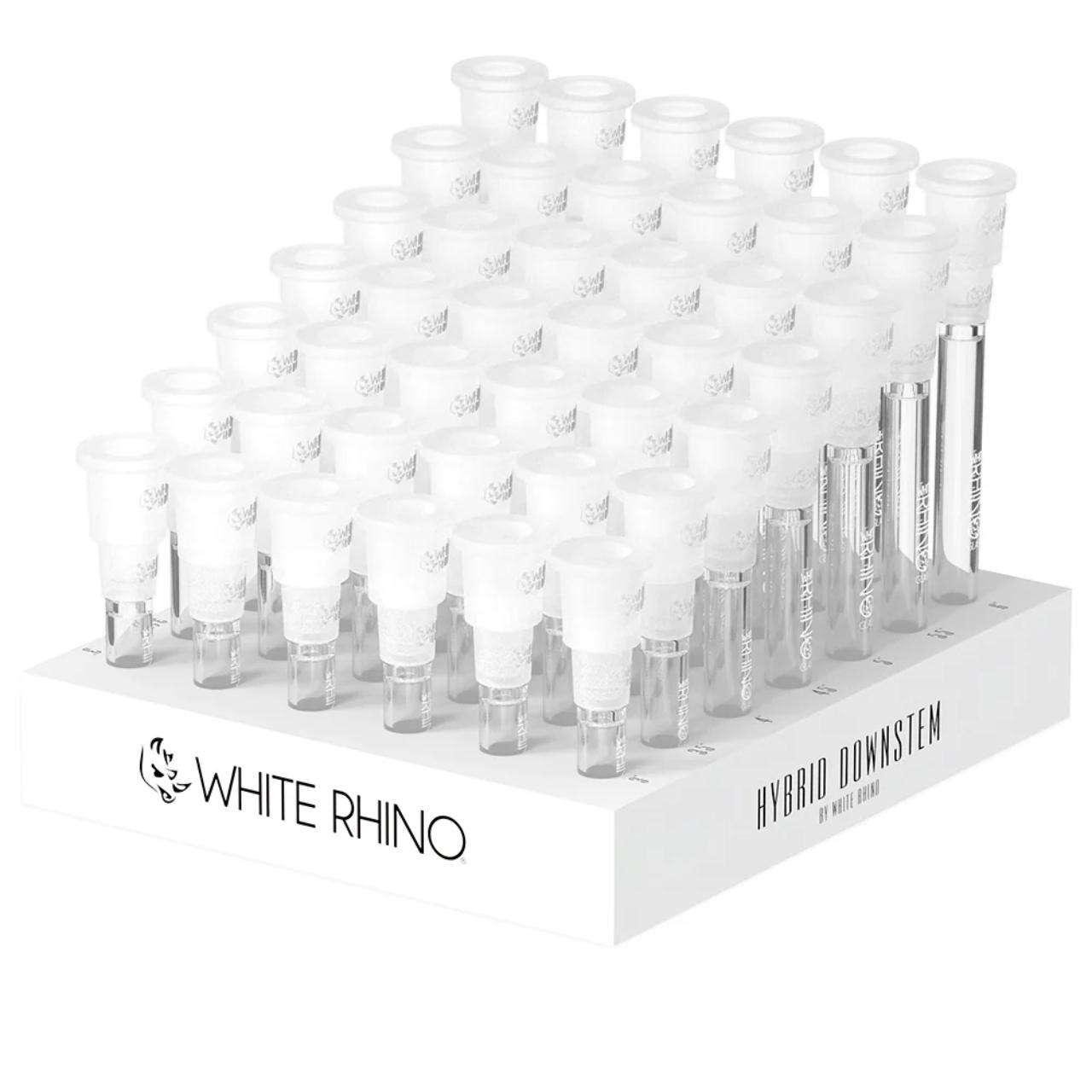 The White Rhino Hybrid Downstem (42ct Display) is a highly versatile wholesale solution designed to fit nearly any water pipe configuration. By combining borosilicate glass with heat-resistant silicone, this product eliminates the common struggle of matching specific joint sizes and lengths.