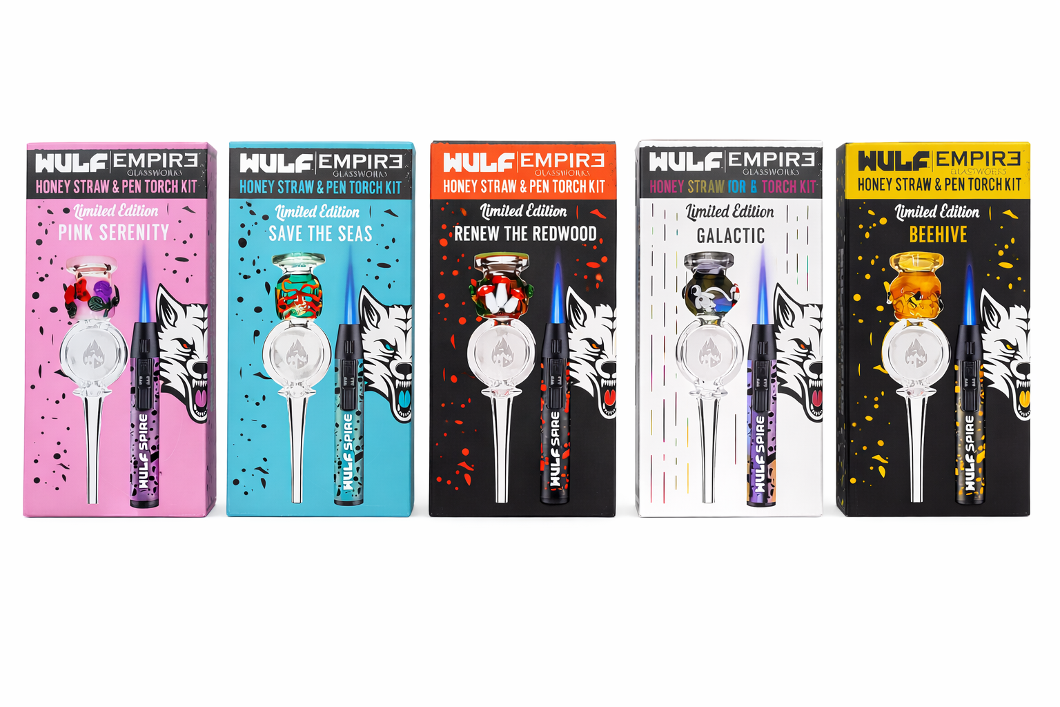 Inspire your customer's creative side with this legendary collab between Wulf Mods and Empire Glassworks. The Honey Straw Kit is no “Wulf" in sheep's clothing. Made with borosilicate glass, art work, and a specifically designed “spire” essential for soaking up vapor. There's no question these pieces are eye catching, and of course functional. They even come with their own torch! Once they're on display for all of your customers to see, they'll be no sales pitch needed.