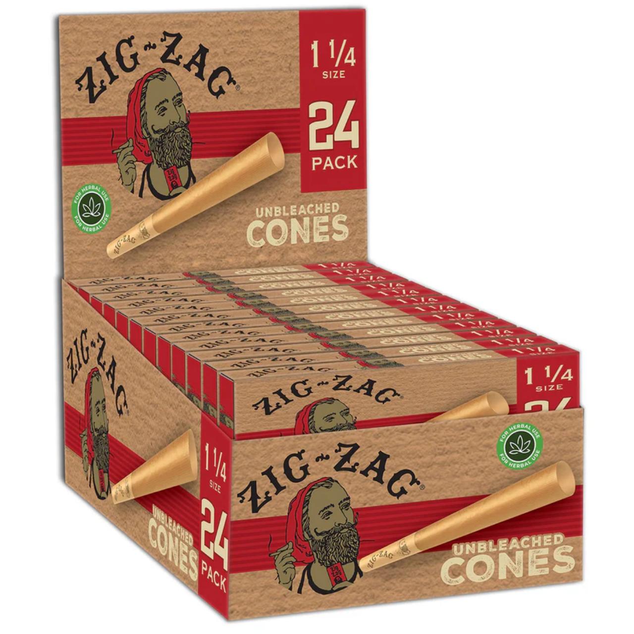 The Zig-Zag 1-1/4 size (78mm) Pre-Rolled Cones in the 12-pack display box (24 cones per pack) is a high-volume bulk configuration. This setup provides a total of 288 cones per box, making it one of the most cost-effective ways to purchase premium Zig-Zag cones.