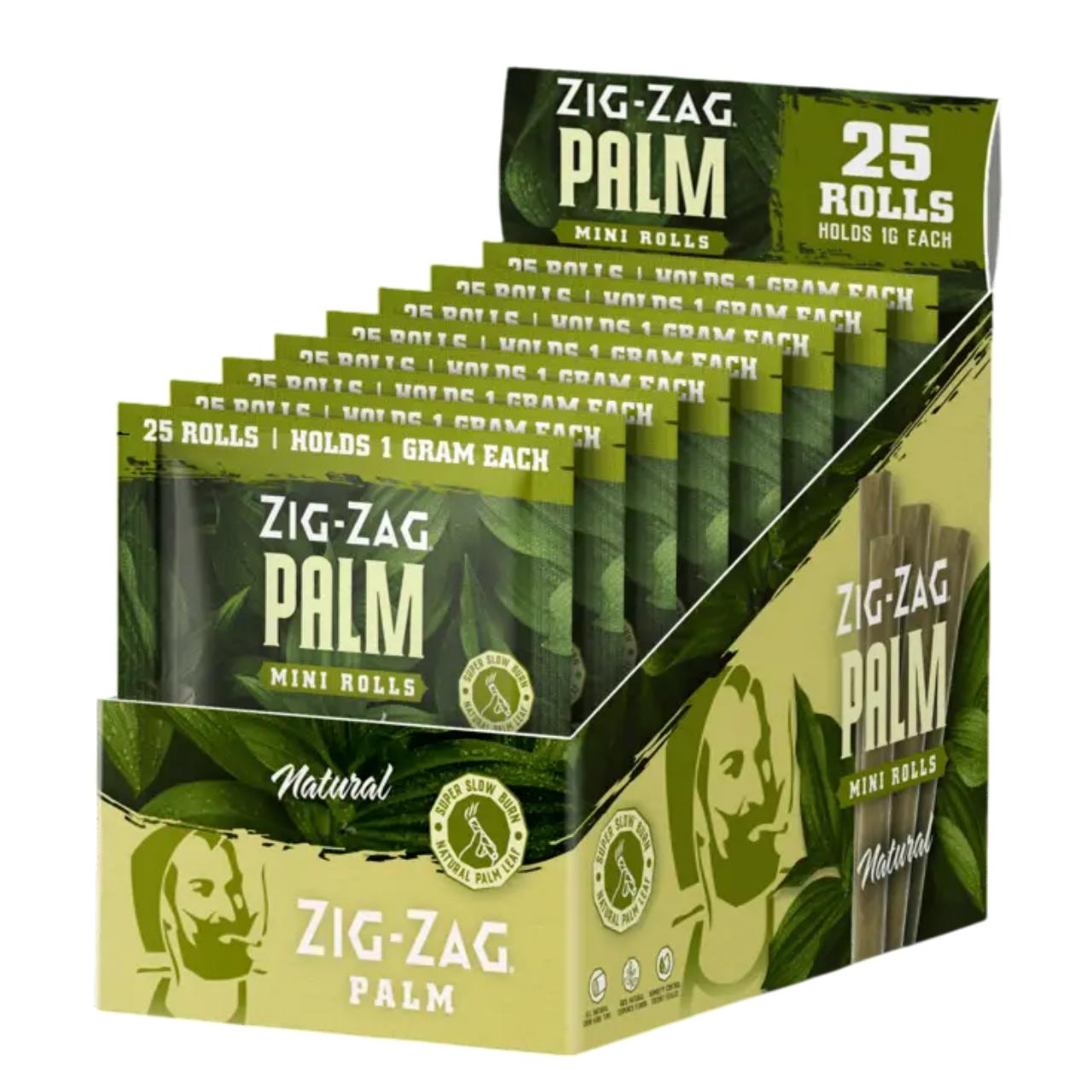 The Zig-Zag Palm Mini Rolls (Natural) in the 8-pack bulk box is the largest personal-use or retail-ready configuration for this product line. Each individual retail pack contains 25 cones, providing a massive total of 200 rolls per box.